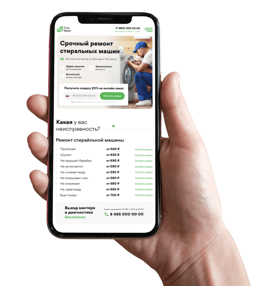 True Wash уже более 8 лет на рынке ремонта стиральных машин. За это время мы зарекомендовали себя как надёжная ремонтная компания, которая уверена за результат. Наши мастера оперативно восстанавливают стиральные машины любых марок и моделей как с фронтальной, так и с вертикальной загрузкой.